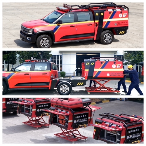 新能源滅火消防車是我公司最新研發的用于撲救新能源火災的前突快反消防車。該車采用新能源火災撲救技術,結合高效高壓噴霧射流系統,可快速通過擁堵、狹窄、復雜道路抵達火災現場,用于新能源汽車、地下車庫充電樁等新能源設備火災的進行高效撲救,有效解決新能源火災只能控、不能滅的難題,填補消防救援隊伍在該領域設備的空白。
